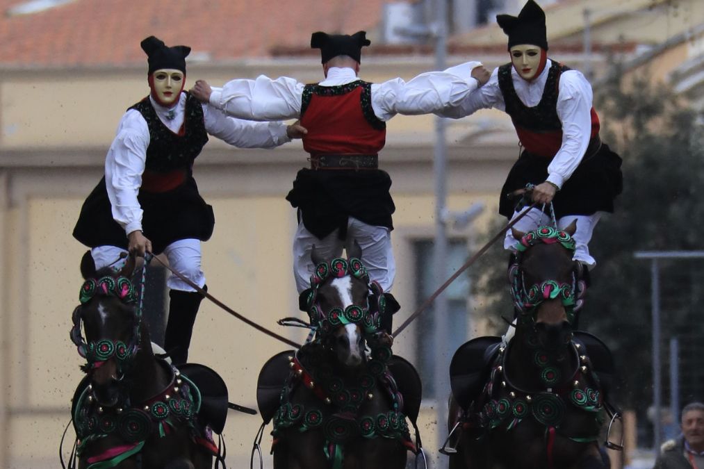 Questa volta affronterà il percorso con i suoi compagni che a gran galoppo guideranno i cavalli mentre lui riverso sulla groppa del cavallo saluta e benedice la folla con “Sa Pippia de Maiu”.